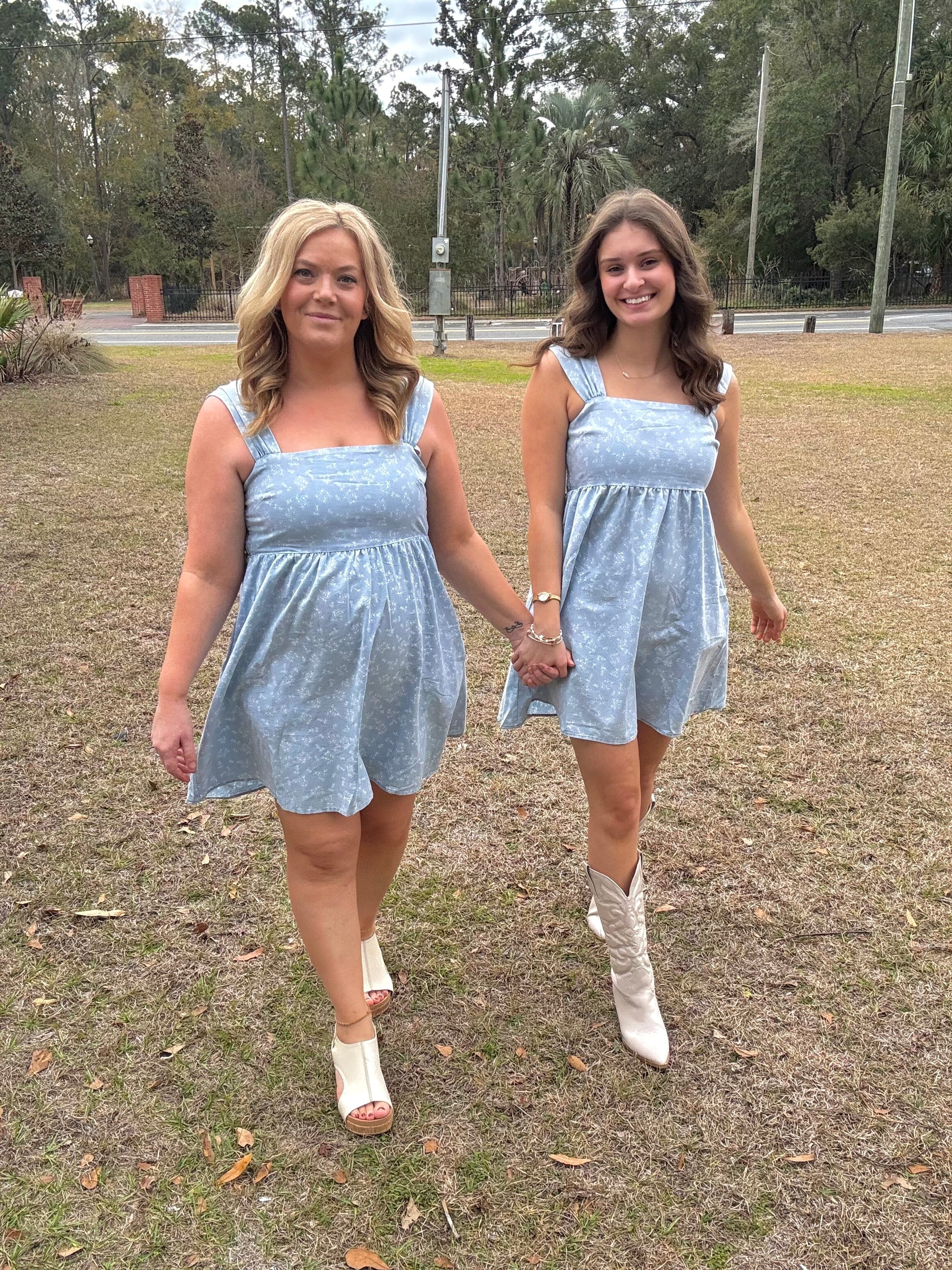 The Willow and Vine Floral Denim Mini Dress brings a cool, laid-back feel with its blue denim fabric and white floral print. Structured yet playful, it’s an easy throw-on mini that pairs perfectly with boots or sandals for everyday outings and weekend plans.